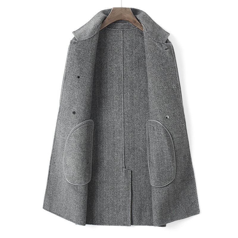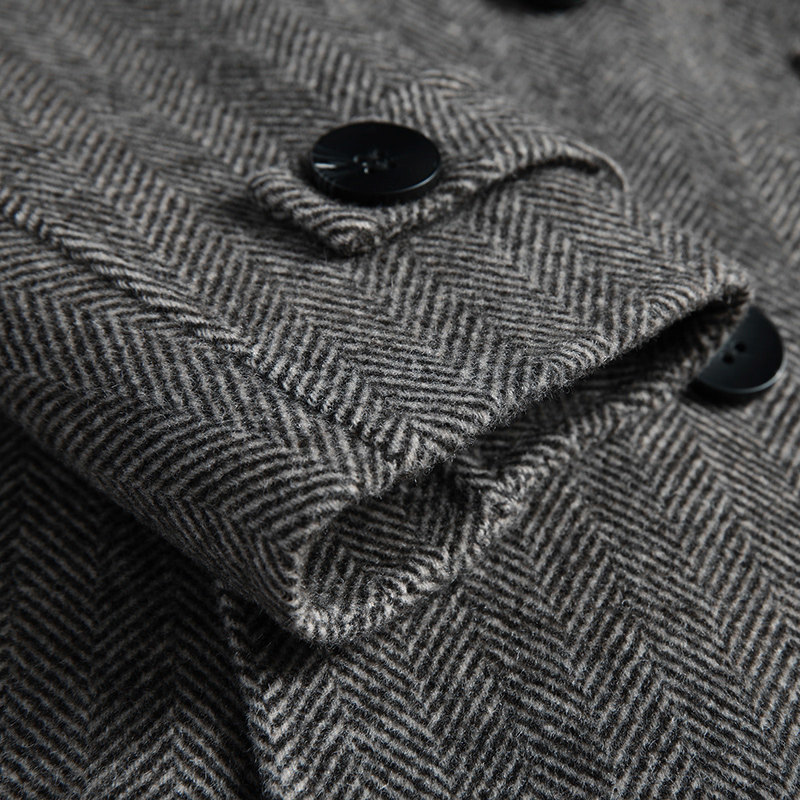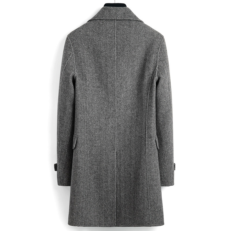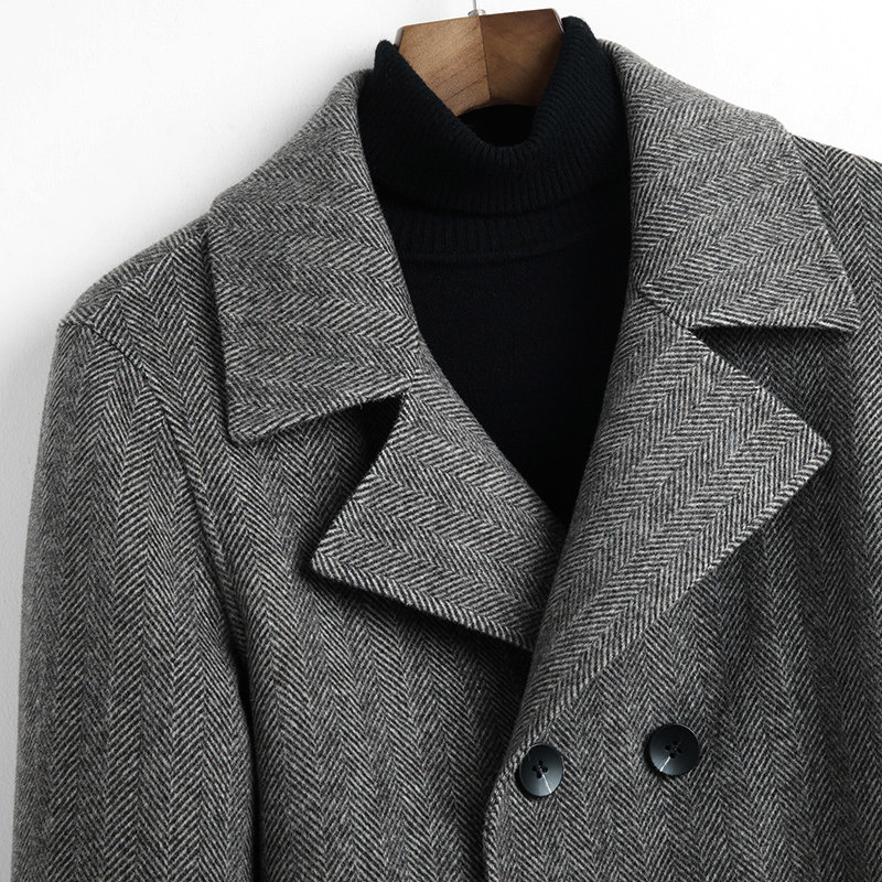 Winter double-sided wool coat for men with long style herringbone tattoox double-row buttoned without cashmere coat-Taobao