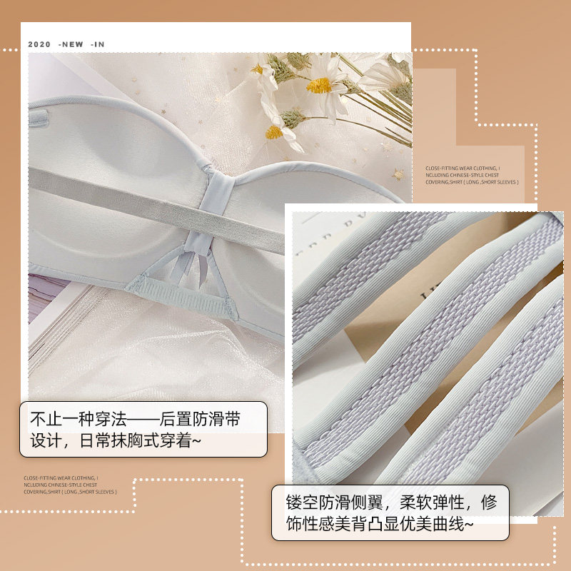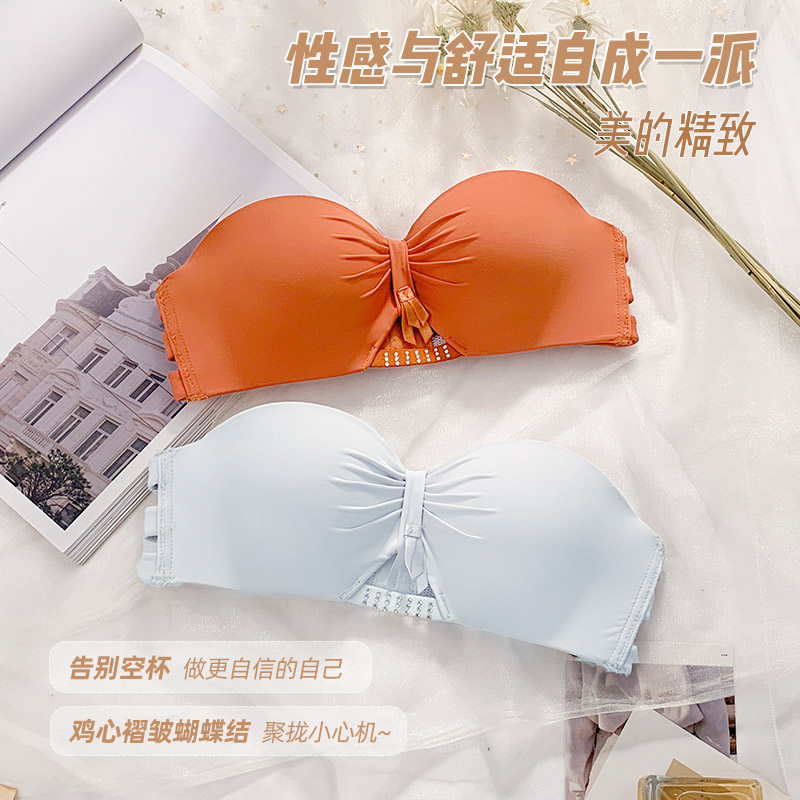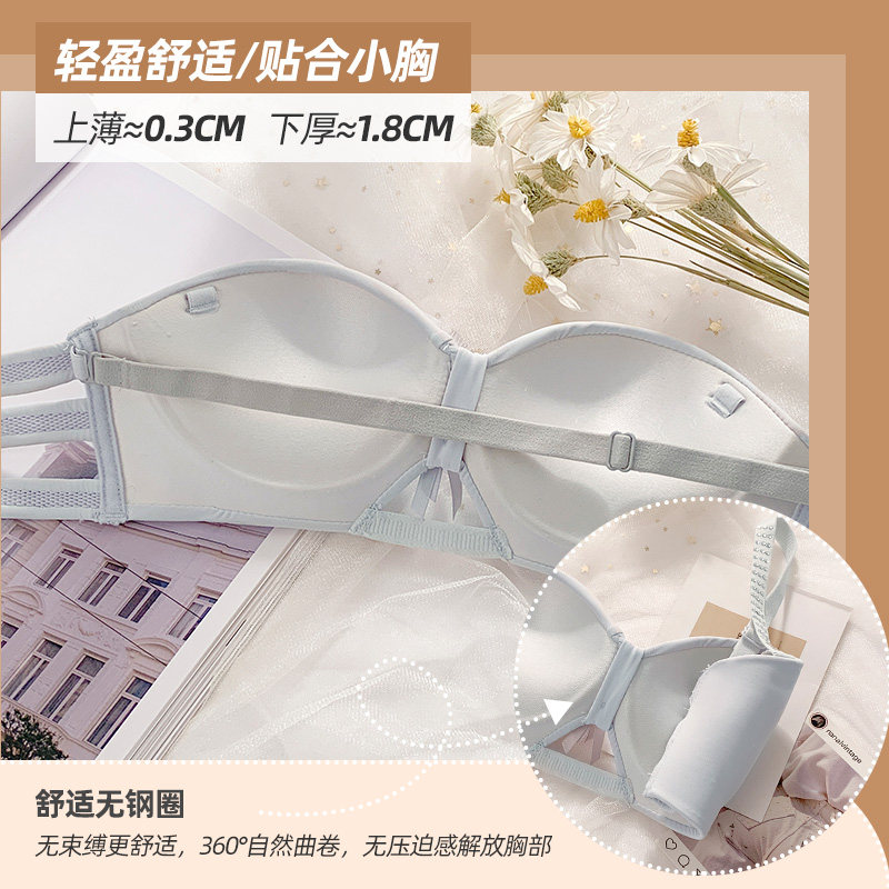 No shoulder strap anti-skating summer sexy invisible underwear without steel ring small breast gathering half cup of girls bra underwear suit
