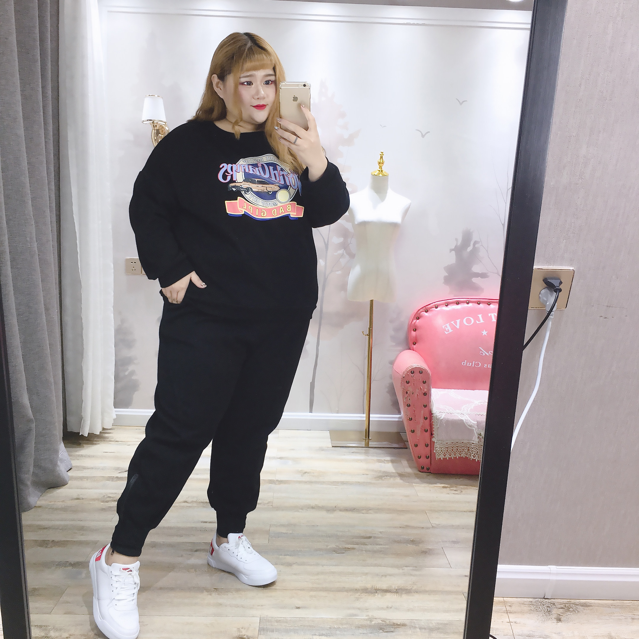 Fat fairy Yingying big size women's clothing fat MM200 catties autumn zipper foot harem pants loose casual overalls pants