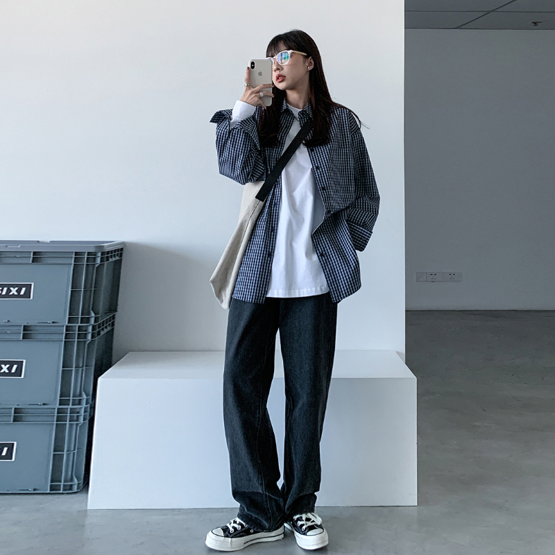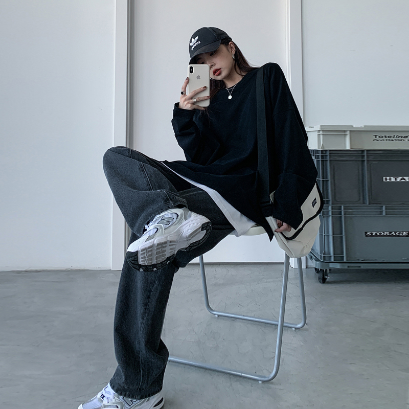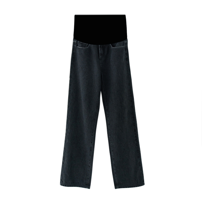 Pregnant women denim pants spring and autumn thin black loose straight tube wide legs mopping inside trousers autumn and winter