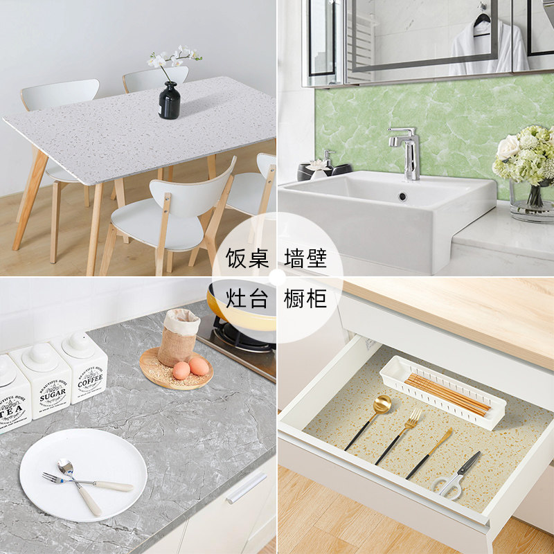 Dining table desktop waterproof, oil-proof, anti-scalding, disposable coffee table mat, self-adhesive countertop, refurbished PVC plastic desk, ins fabric