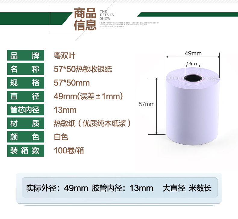 Guangdong Shuangye 57x50 thermal paper 58mm delivery receipt paper roll photocopying paper supermarket cashier counter small ticket paper Austria
