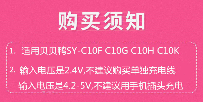 Adapted to Beibei duck baby hair straightener SY-C10F C10G C10H 10K charger clipper USB power cord