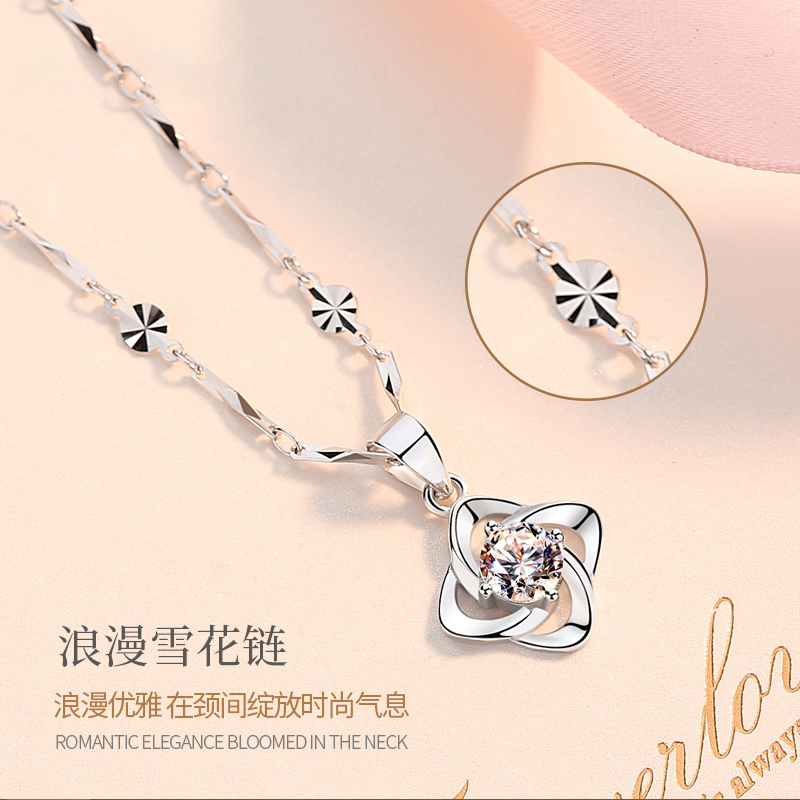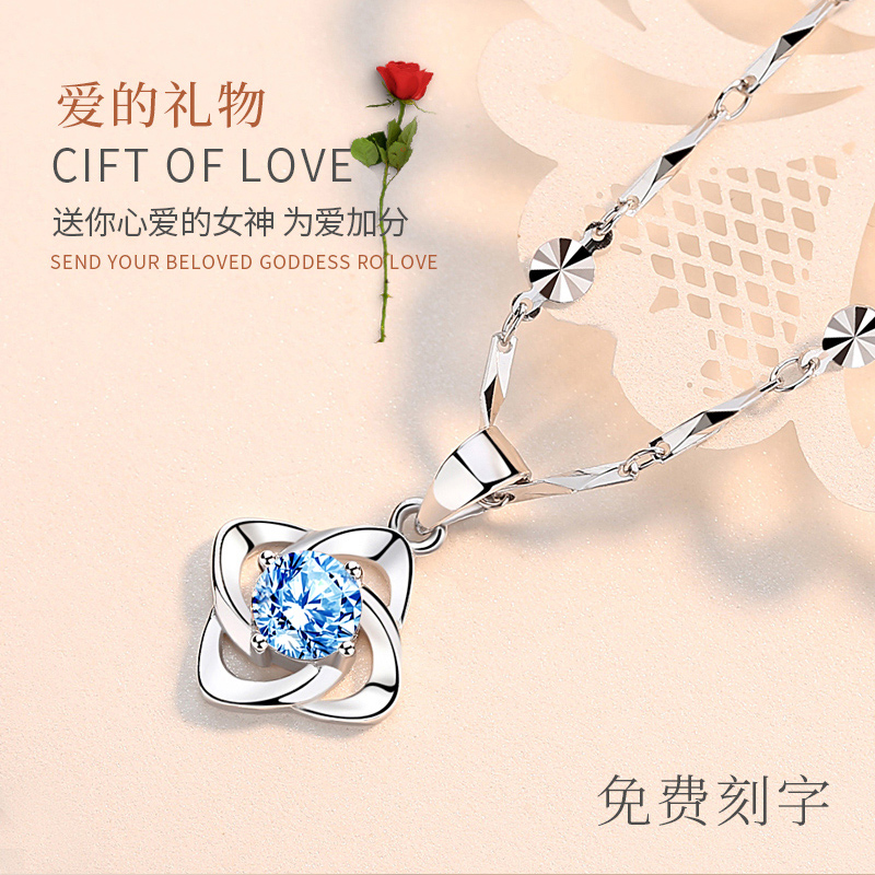 999 pure silver necklace female four-leaf grass pendant light lavish minority Mother's Day 520 Valentine's Day birthday gift to girlfriend