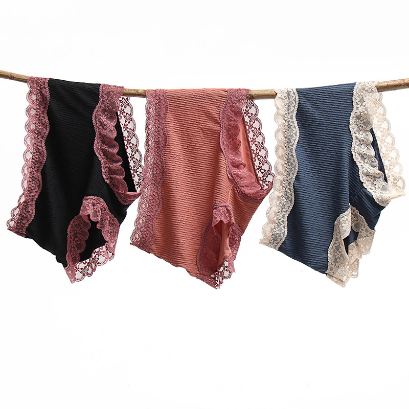 Large size lace underpants female medium-high waist Modale crotch bottom day tie triangular pants head loose and fat mm200 catty