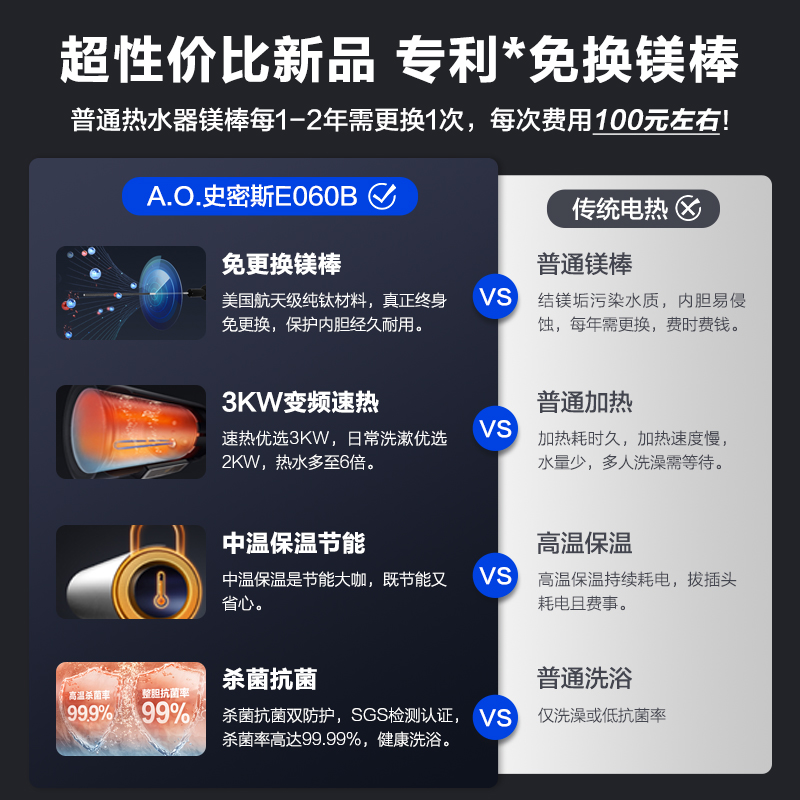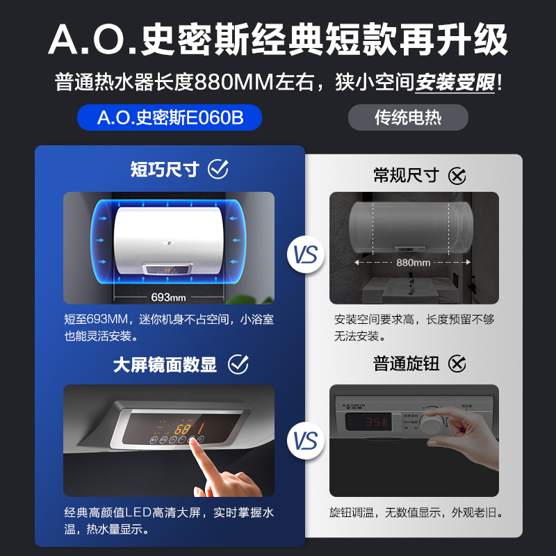 AO Smith official website E060 liter speed thermoelectric water heater durable short household toilet water storage bath small