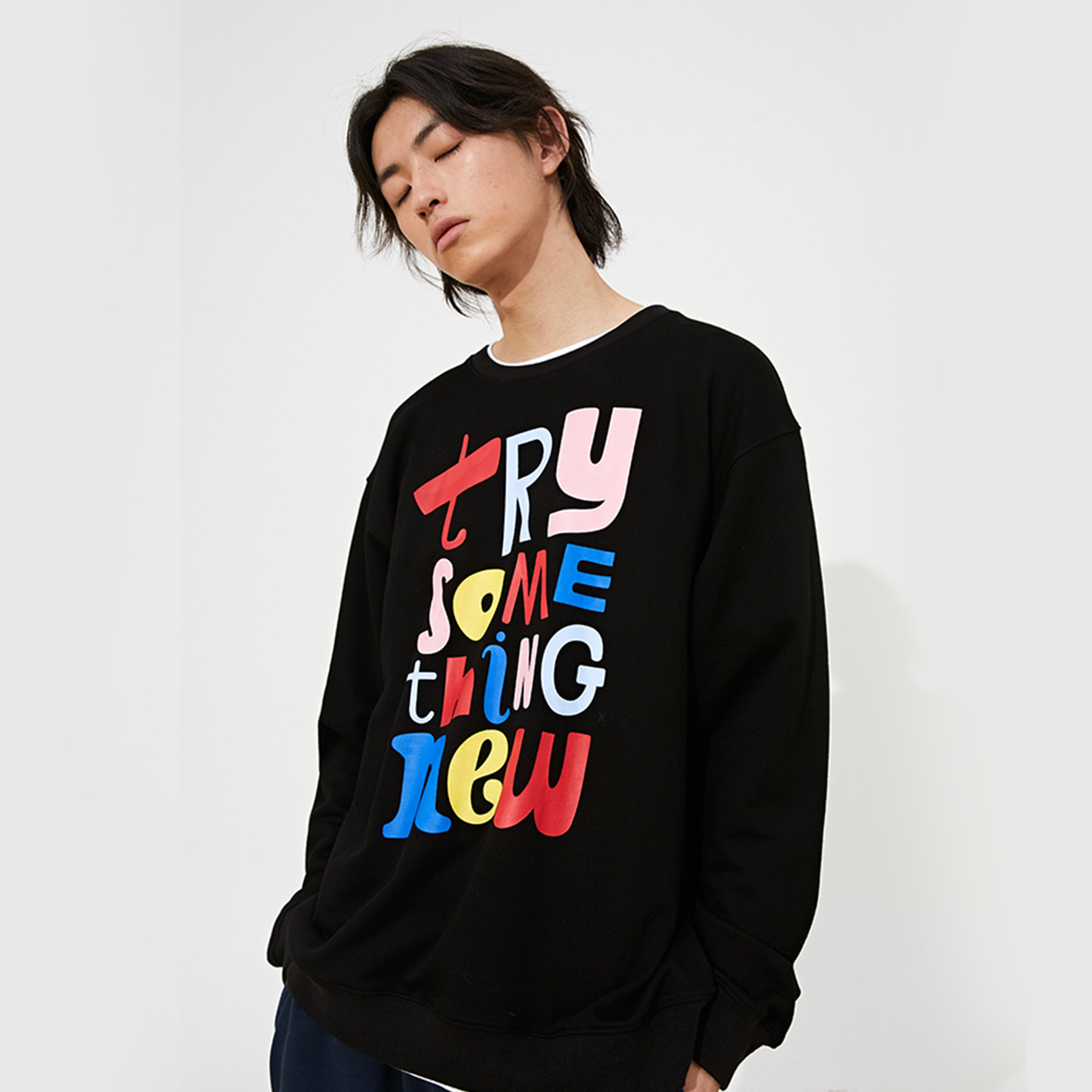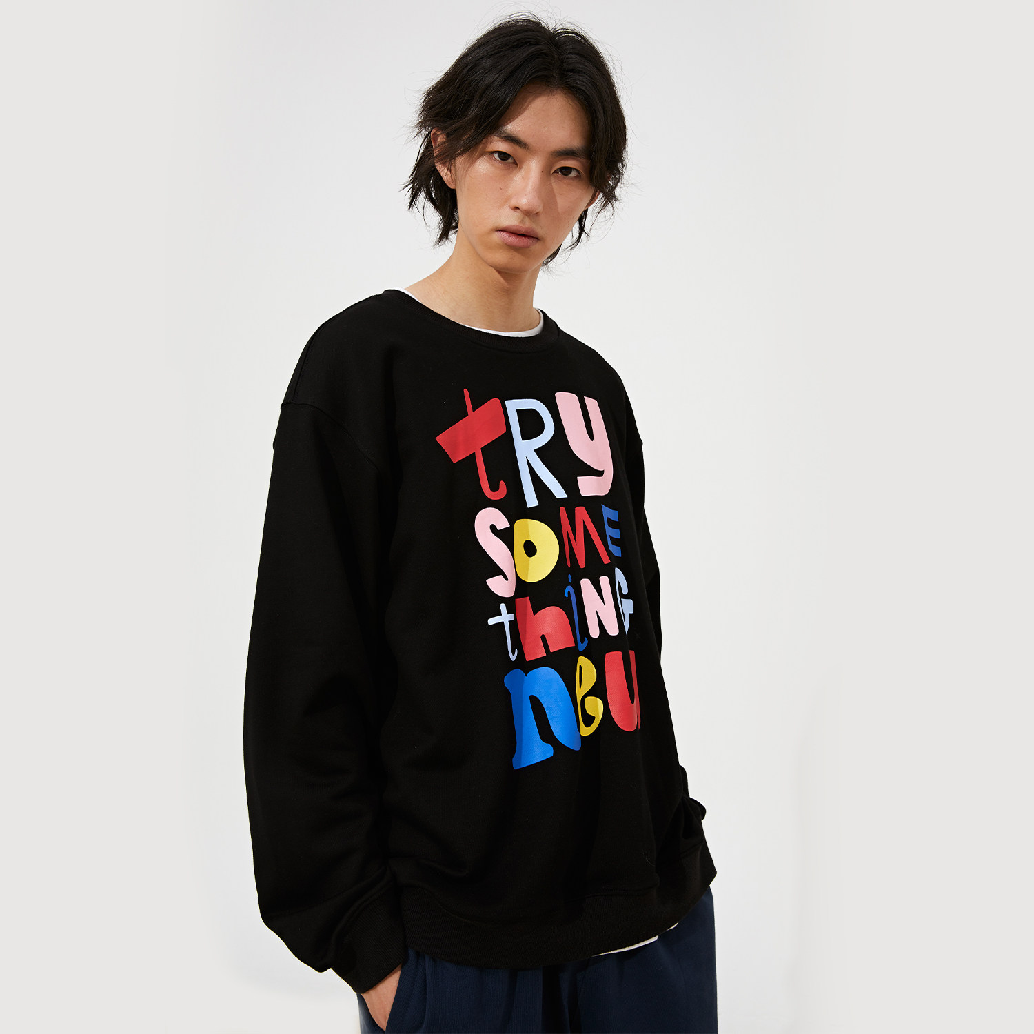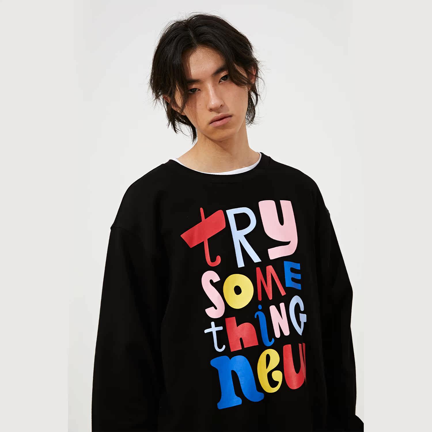 HUGALLGUILT autumn and winter English alphabet print round neck loose men and women with the same tide brand street national tide sweater