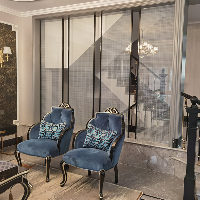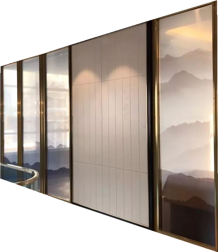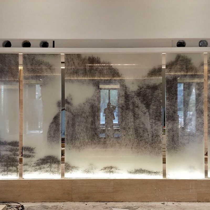 Sandwich art glass tempered custom new Chinese partition screen workwear office home living room background wall