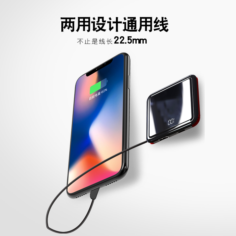 Solar mobile charging 20000 milliammini ultra-thin small large capacity action power supply Bring your own line portable suitable for Huawei Apple oppo girls cute creative quick charging flash