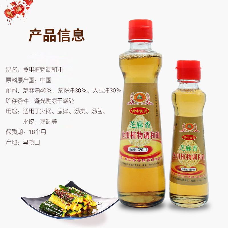 Zhong Fukang 360ml Sesame edible plant blend and oil sesame oil cold dish hot pot dip small bottle