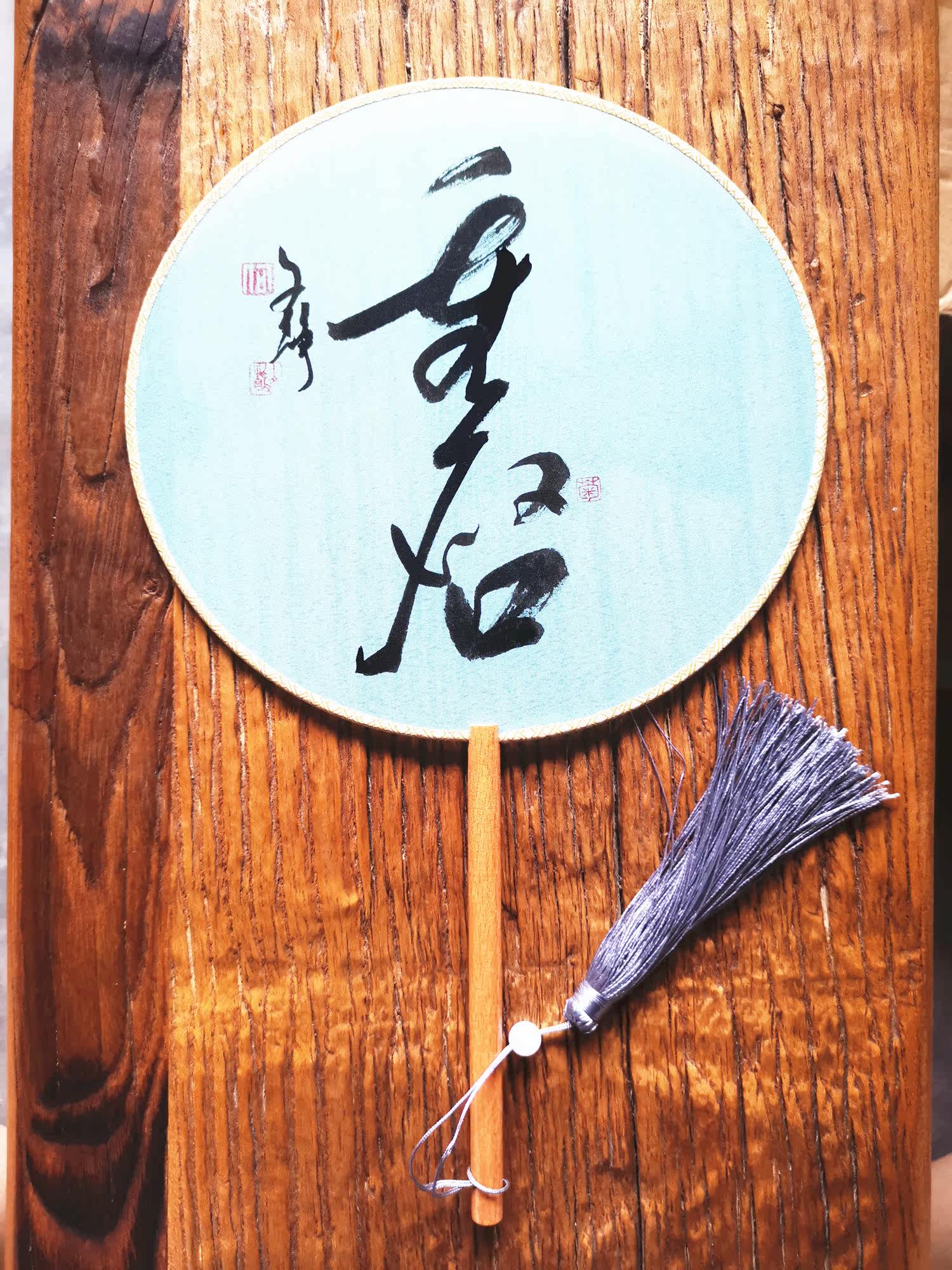 Calligraphy works custom handwritten silk ball fan ancient style hand-mounted famous teacher made incense cornflower about study