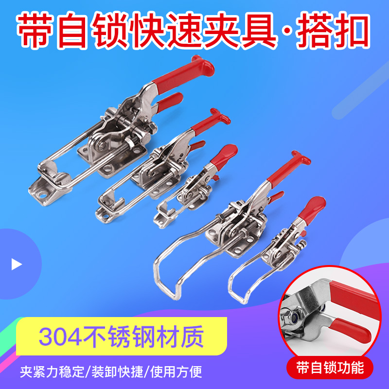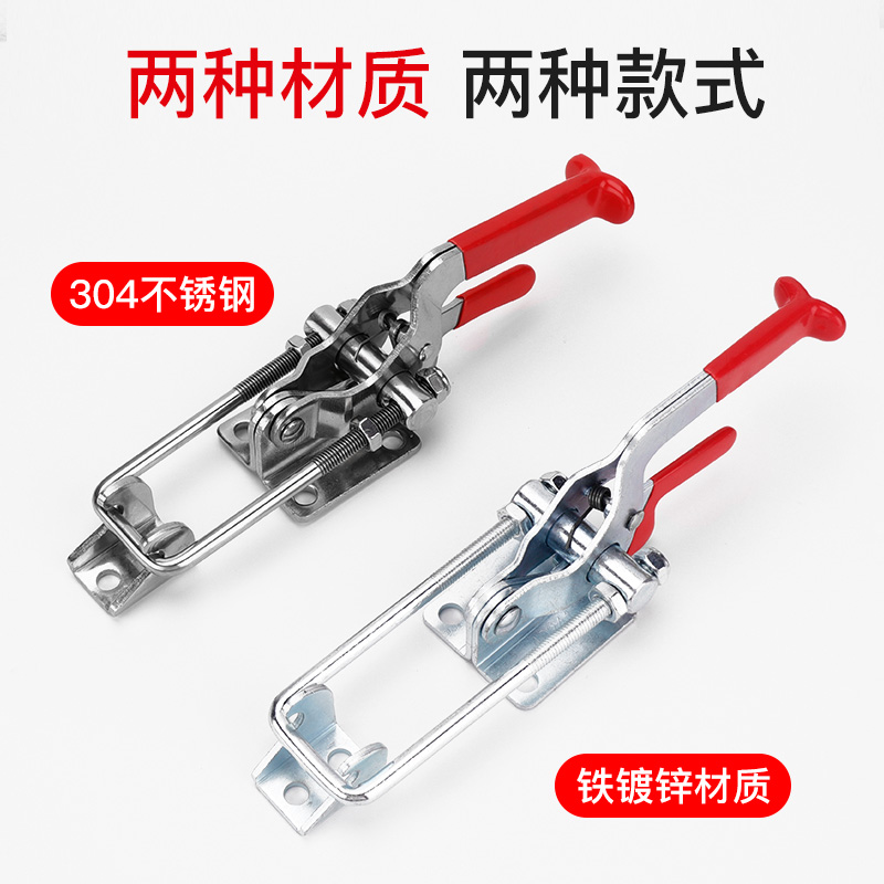 Small with self-locking (galvanized iron) clamping force 180kg Small curved hook with self-locking (galvanized iron) clamping force 180kg Medium with self-locking (galvanized iron) clamping force 350kg Medium bending hook with self-locking (galvanized iron) Clamping force 350kg Large with self-locking (galvanized iron) Clamping force 990kg S with self-locking (304 stainless steel) Clamping force 180kg Small bending hook with self-locking (304 stainless steel) Clamping force 180kg Medium with self-locking T-shaped handle (304 stainless steel) Clamping force 350kg Medium with self-locking round handle (304 stainless steel) 350kg Medium curved hook with self-locking (304 stainless steel) Clamping force 350kg Large with self-locking (304 stainless steel) clamping force 990kg