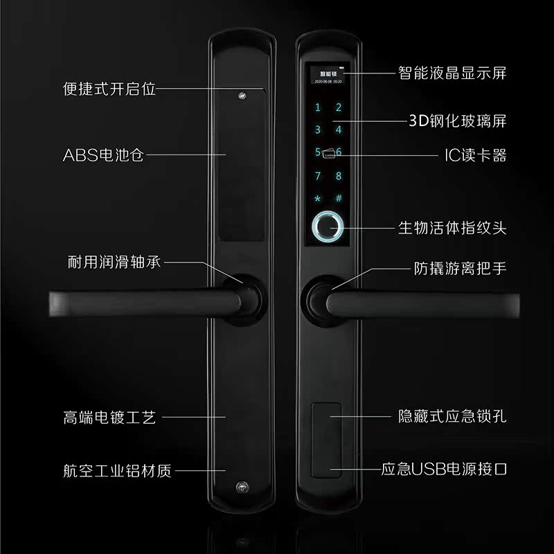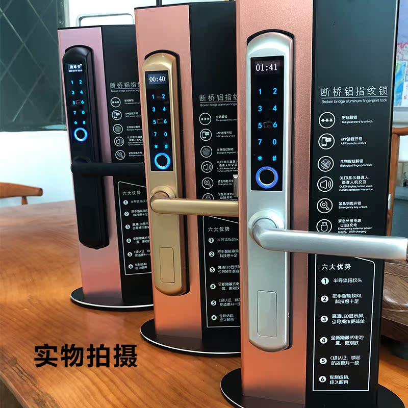 Broken bridge flat open double-sided intelligent fingerprint handle sliding door flat door multi-function door lock waterproof password narrow side door