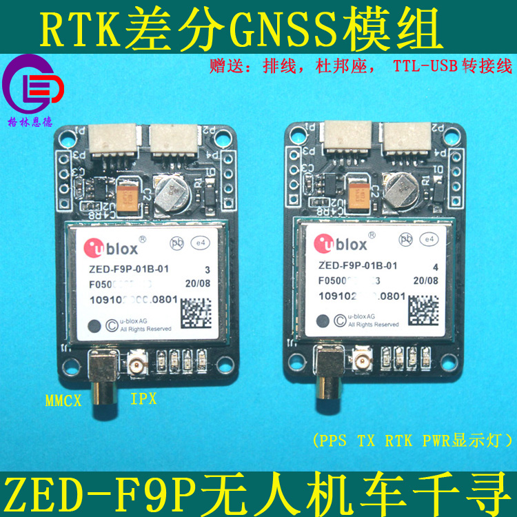 RTK cm class GNSS board card ZED-F9P four-arm unmanned locomotive spiral antenna GPS module GLED-F9P