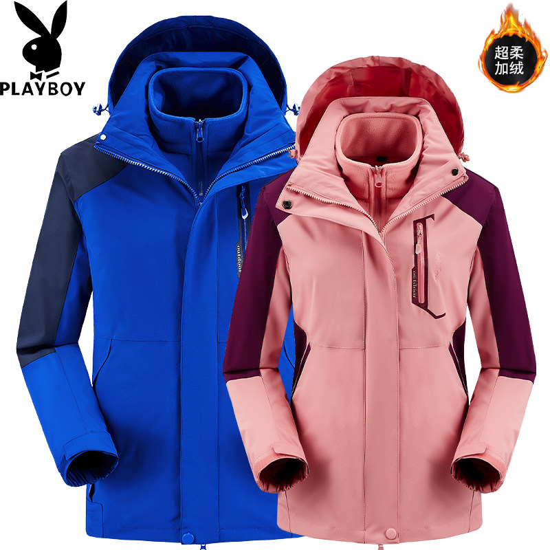 Playboy autumn and winter men's and women's jackets three-in-one removable liner plus velvet thickened windproof warm jacket