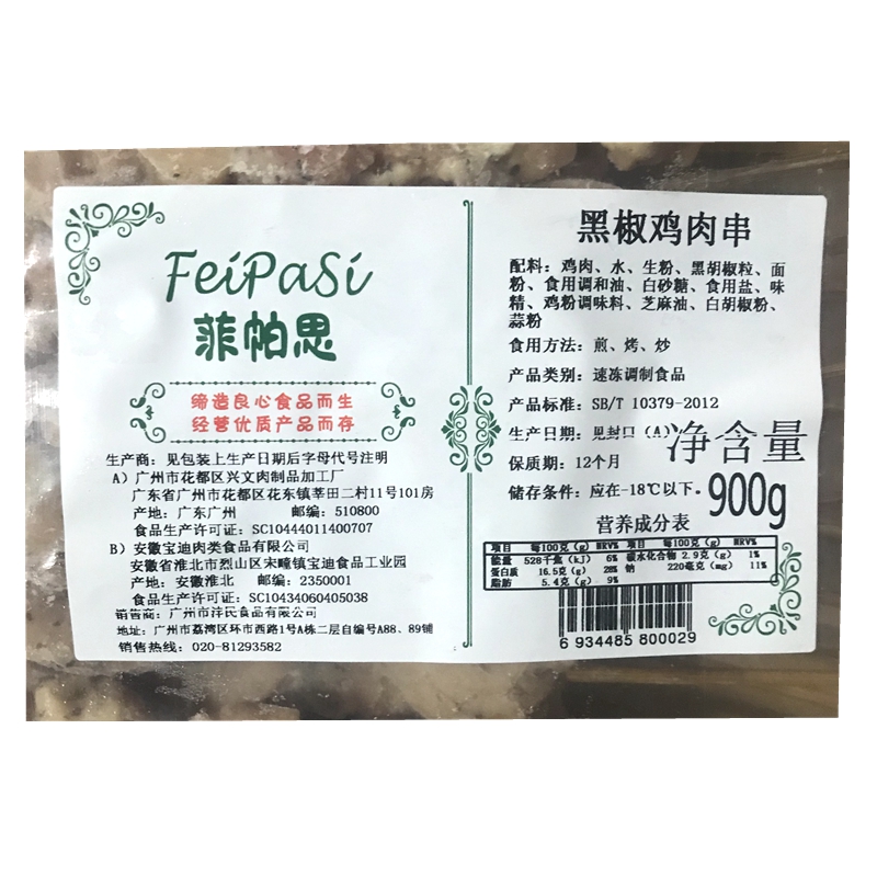 Fepas black pepper chicken string barbecue string of chicken string salted semi - finished fried iron plate snack meat string