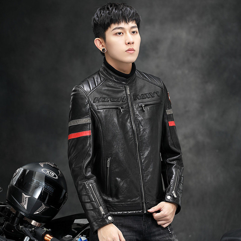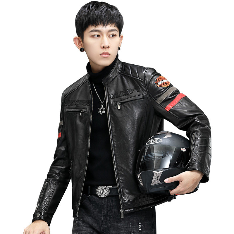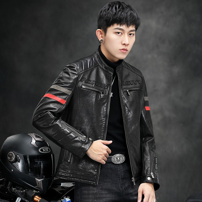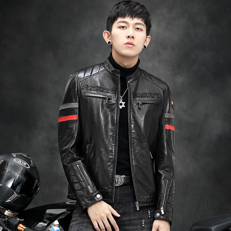 New Genuine Leather Leather Clothing Male Sheep Leather Short jacket Jacket Upright Collar Youth Handsome Air Harei Motorcycle Locomotive jacket-Taobao