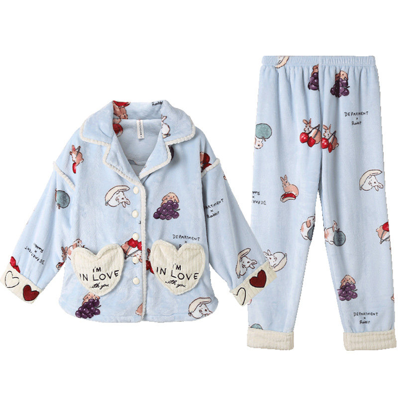 Fentem Pajamas Woman Autumn Winter Style Thickened Flannel Warm Cartoon Winter Coral Suede Lady's House Conserved Two Sets