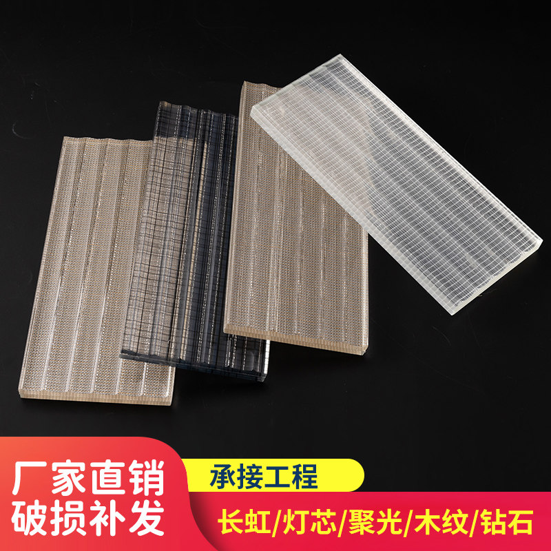 Ultra-white Changhong glass screen partition concentrated wood grain diamond water ripple wick clip silk clip silk glass customization