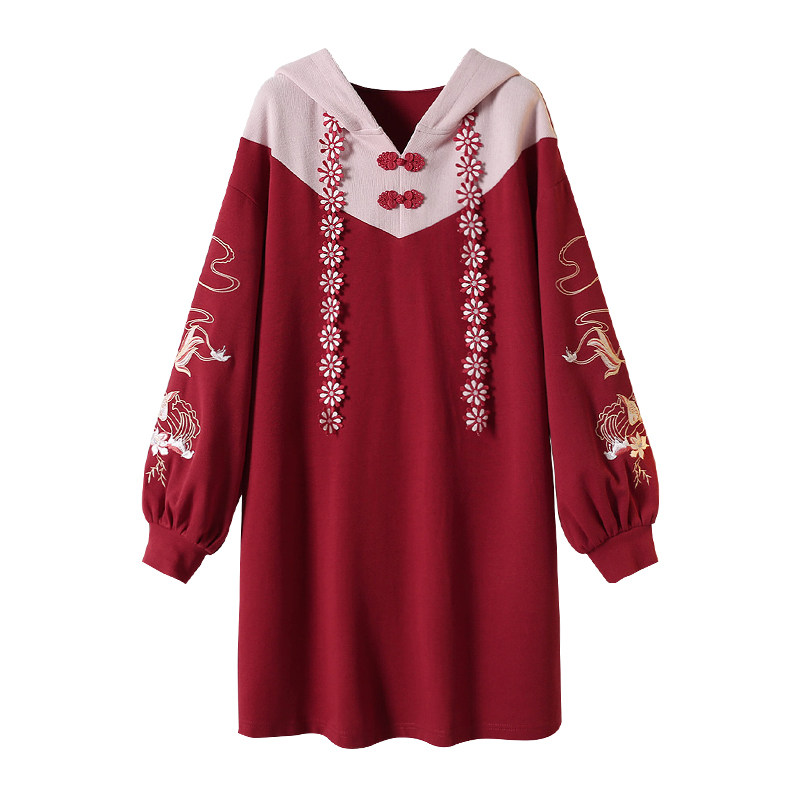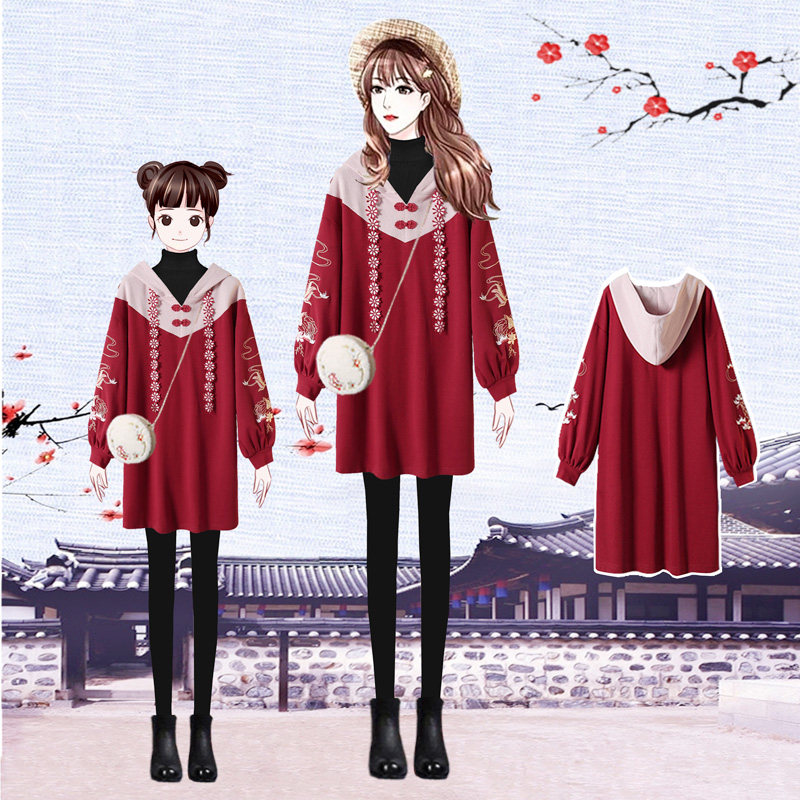 Fried Street pro-son dress with cap and clothing 2023 Autumn and winter a family of three Chinese wind embroidery Heater jacket foreign air tide-Taobao