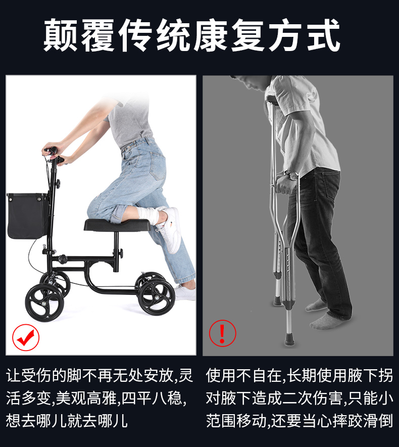 Feet fracture walker rehabilitation of one leg and rod leg injury balance young man-assisted walker four wheeled cart