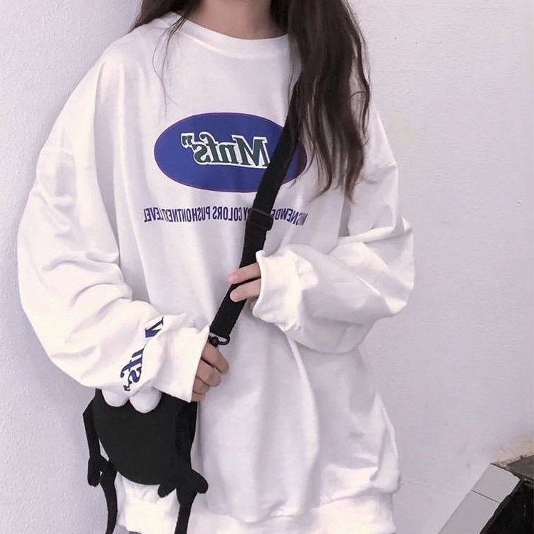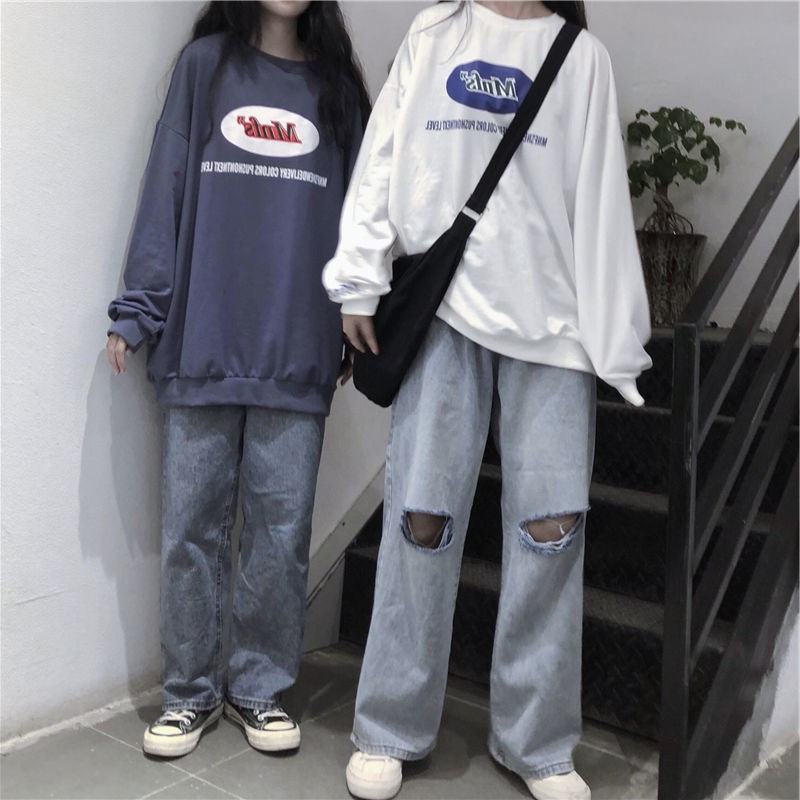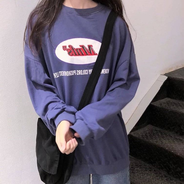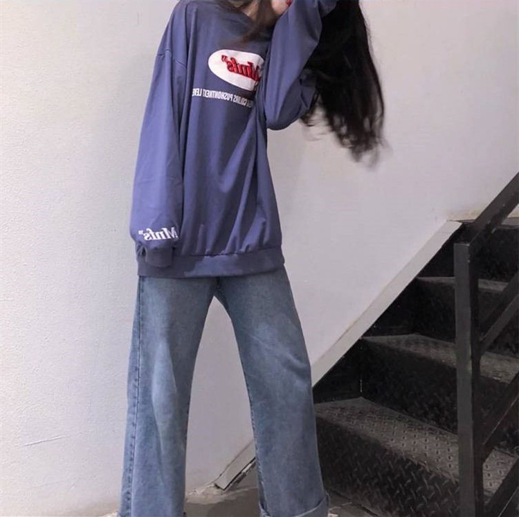 ins overfire sweatshirt female spring autumn harbor taste ancient with thin and round collar jacket Han version tide students loose and conspicuity blouses