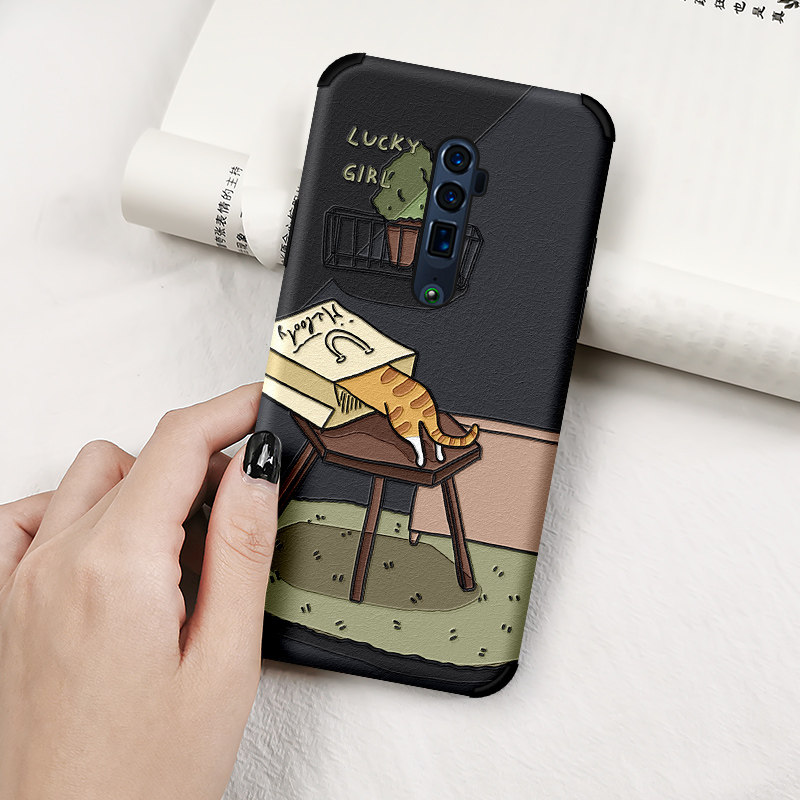 OPPO Reno2 mobile phone protection shell lady RenoZ cute Reno2Z Healing Ensemble Cartoon Kitten kitty Reno anti-fall Reno Zoom Version soft silicone Silk Thread Float