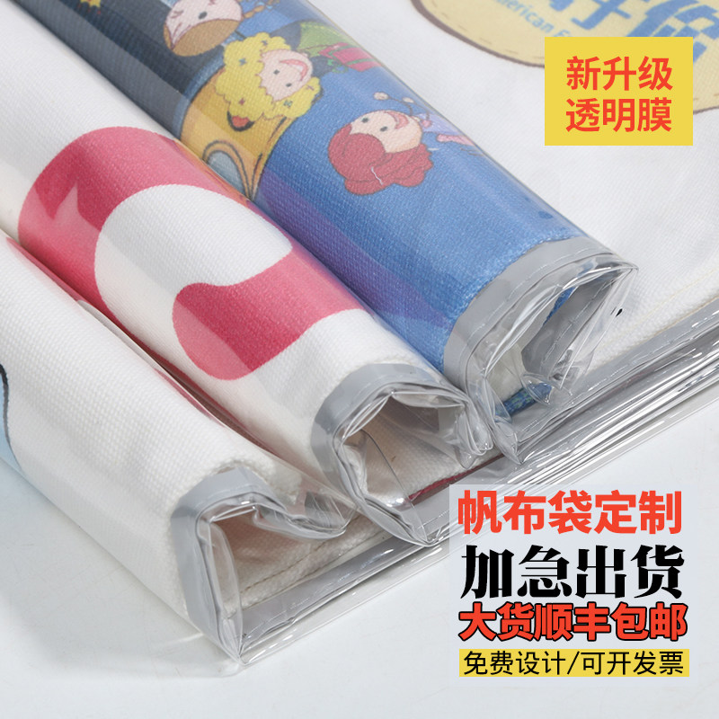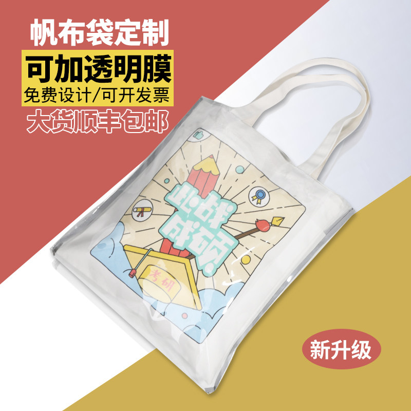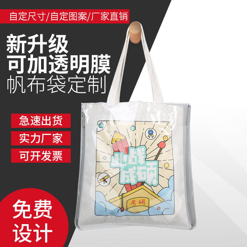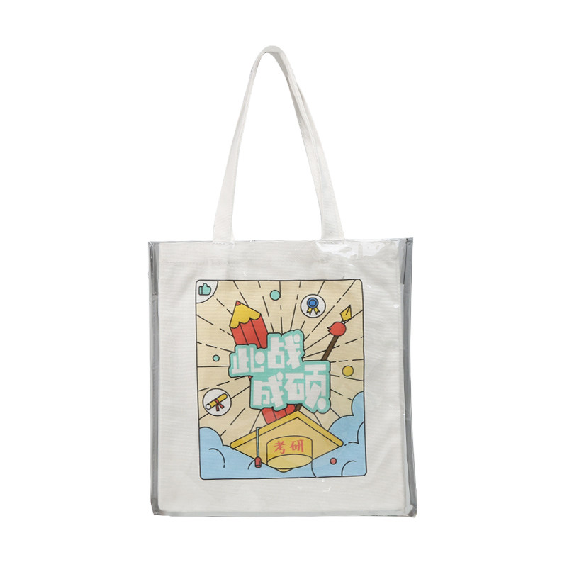 High-grade PVC transparent double-layer canvas bag custom pattern cotton handbag bag custom logo environmental protection bag
