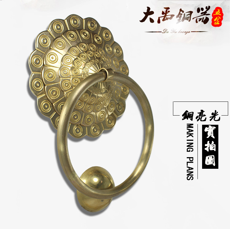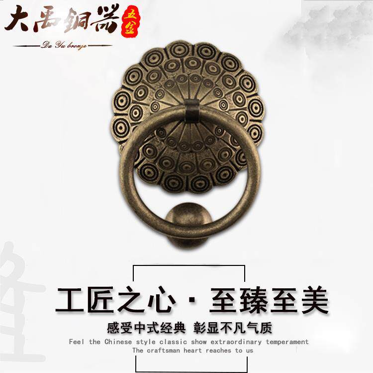 Copper door knocker Chinese door handle Pure copper old-fashioned retro round antique wooden door handle Lion head beast head handle