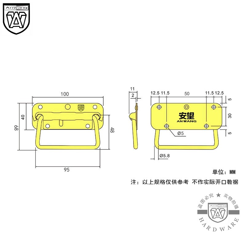 Iron spring handle Industrial handle Wooden box handle Air box handle Luggage handle 100MM No rubber