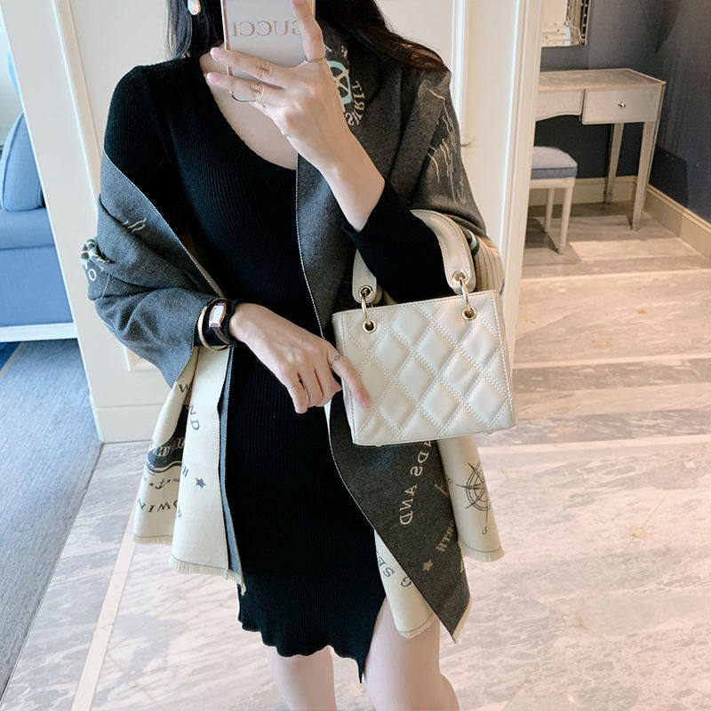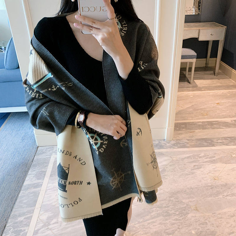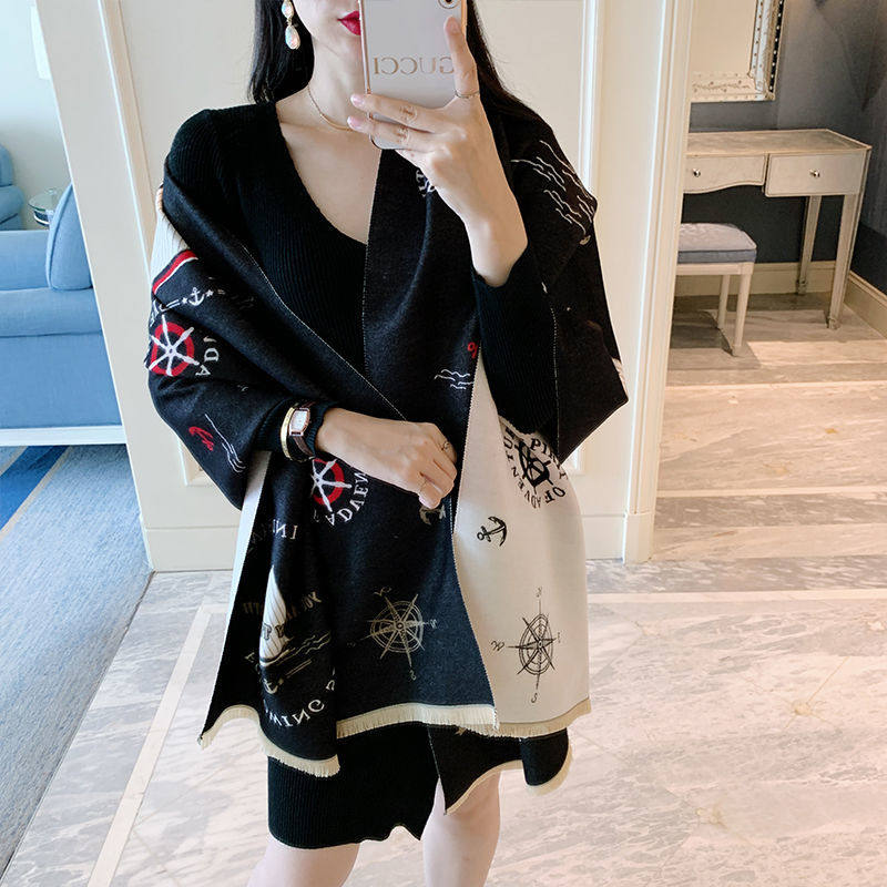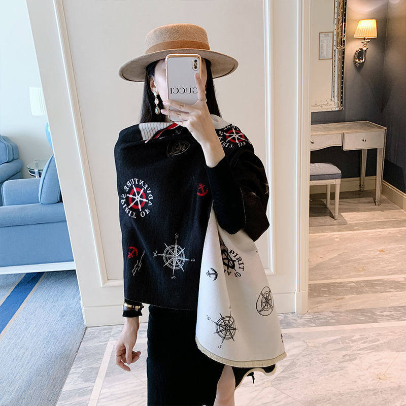 Korean version of autumn and winter warm jacquard wool shawl collared double face cashmere thickened scarf women's fashion 100 hitch fashion craze