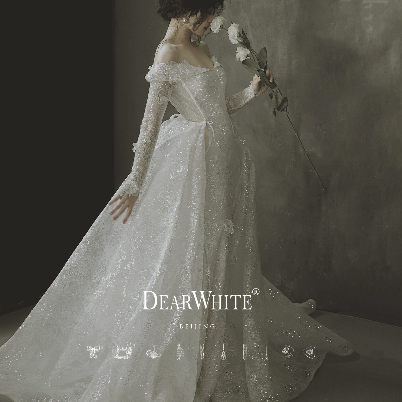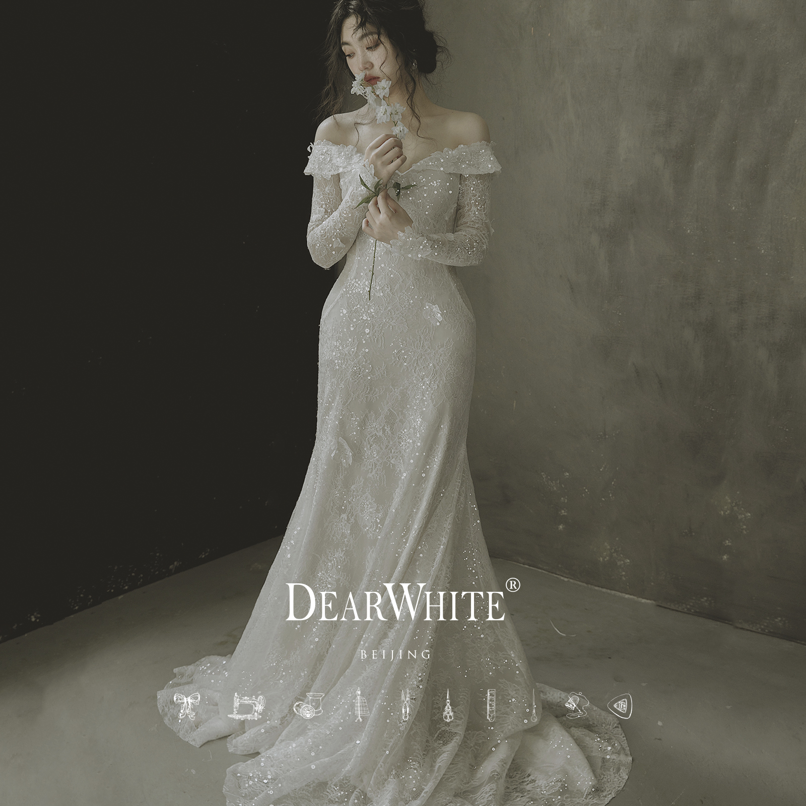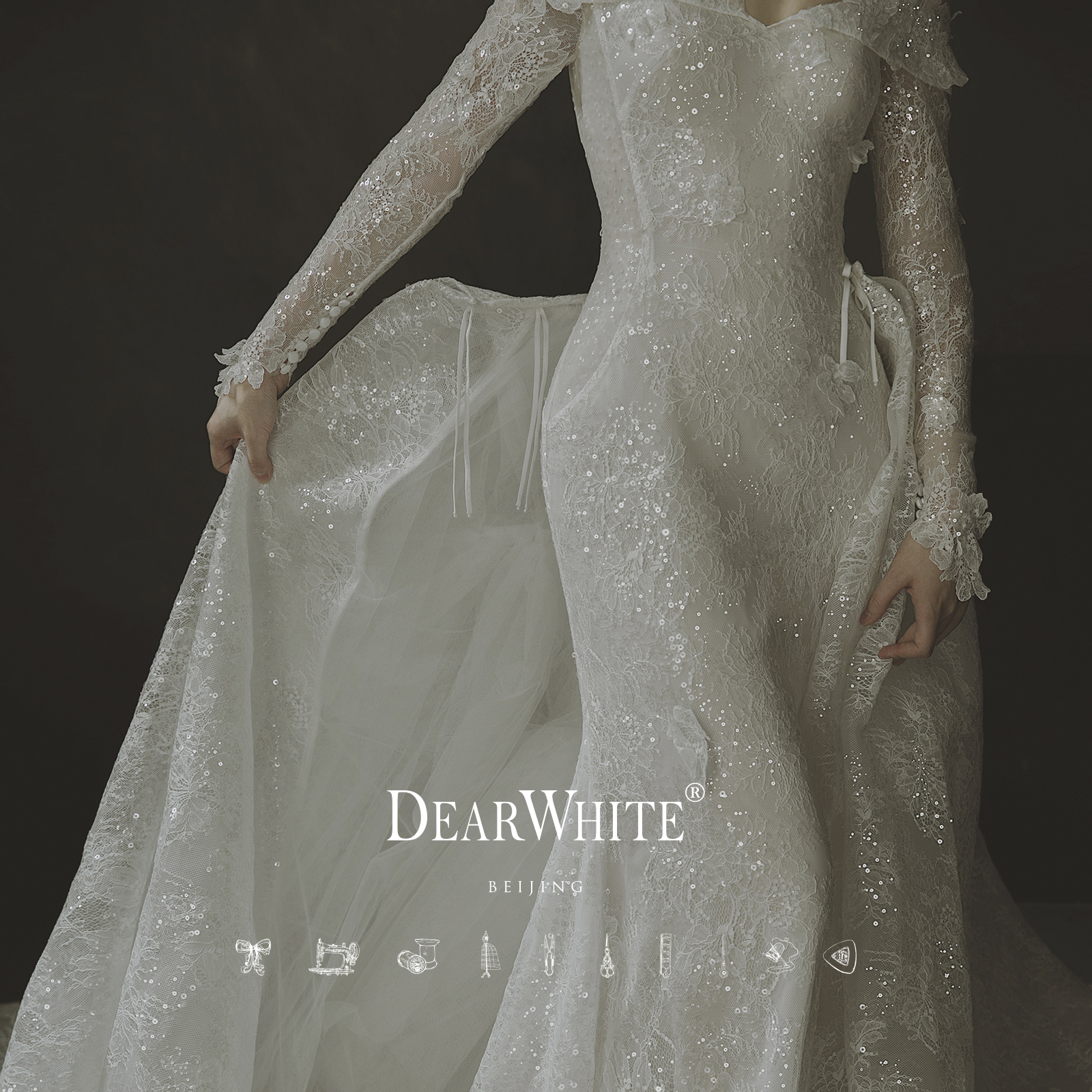 Dear white "Twin Mirror" original innovative one-shoulder fishtail wedding dress bridal main dress two wearing tail dresses