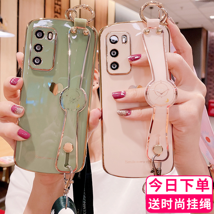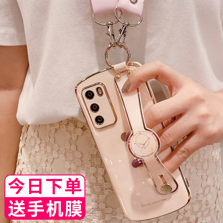 Huawei p40pro mobile phone protection shell p40 upscale women's soft shell silica gel plated shell full package lens anti-fall oval protective sleeve personality creative limited edition light extravagant ultra thin protection shell with hanging rope