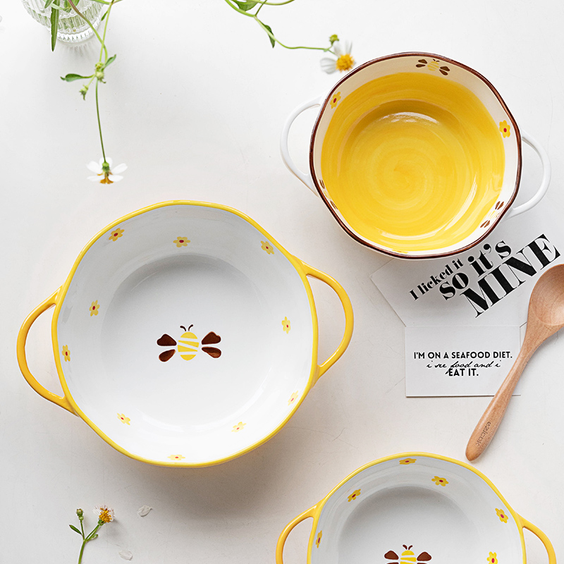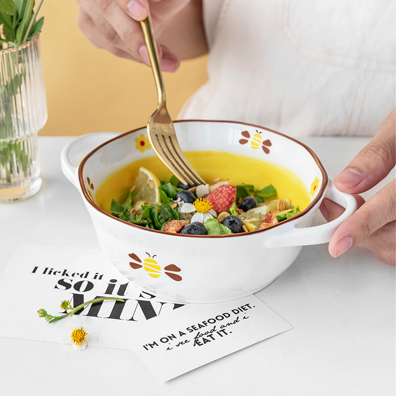 MAR March | Original bee Baking Bowl double ear bowls Ceramic Salad Bowl rice bowls Bowl Soup Bowl LOVELY LARGE BOWL