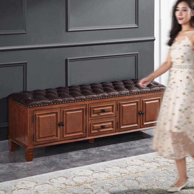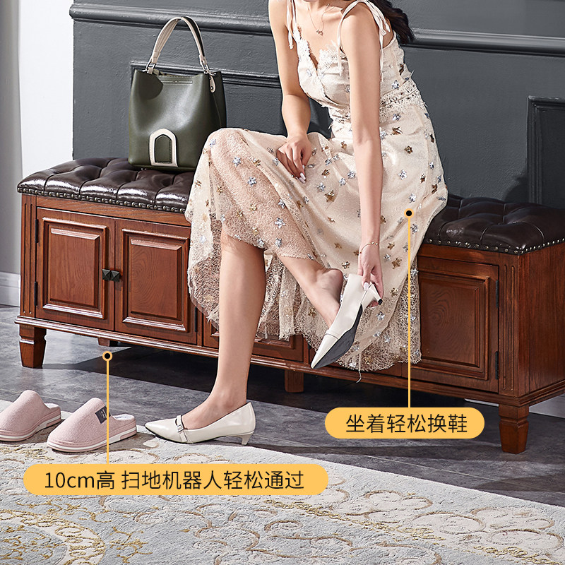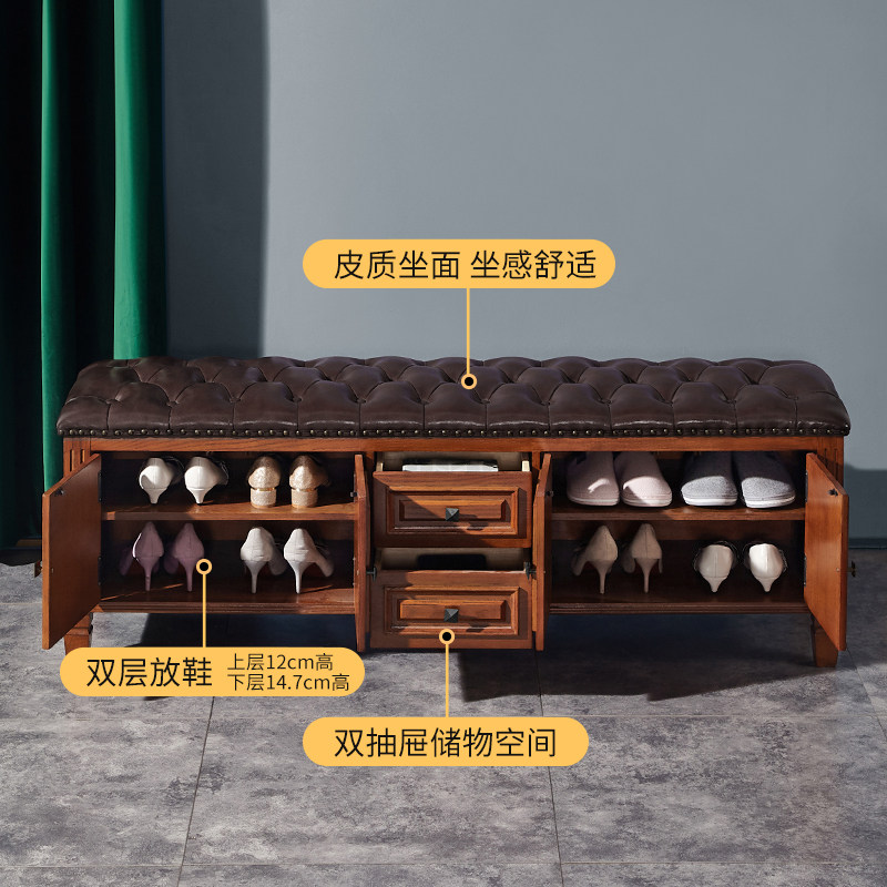 Mousse American modern minimalist solid wood changing shoes Stool Shoes Cabinet in door Home Genuine Leather sitting style Shoe stool Shoes Stool