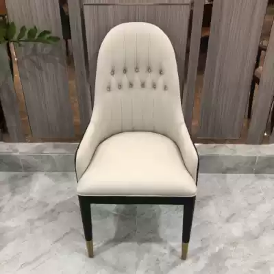 Modern simple light luxury solid wood chair soft leather chair fabric hotel dining chair backrest armchair new Chinese style