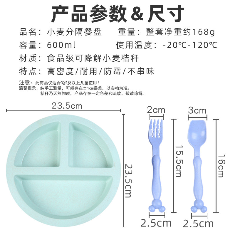 Cartoon creative children's plate set Anti-fall household lunch box Wheat stalk Kindergarten divided grid fast food plate dining bowl