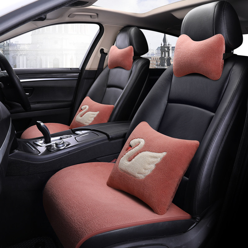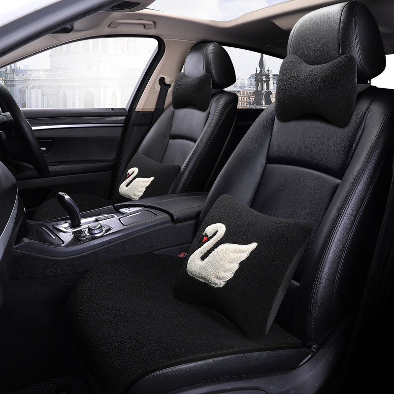 Cute cartoon car seat cushion single seat plush swan single seat cushion single square cushion winter warm cartoon three-piece set