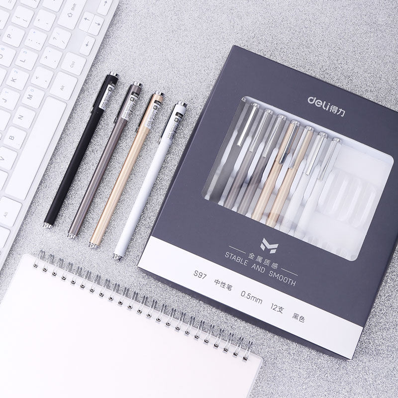 Powerful stationery S97 metal texture pen neutral pen signature pen student water-based pen black 0 5mm examination business office black pen single pack