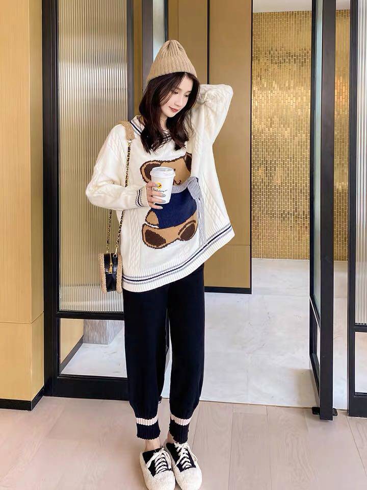 Bear sweater spring and autumn pants plus sweater sweater spring and autumn pants and sweater plus pants