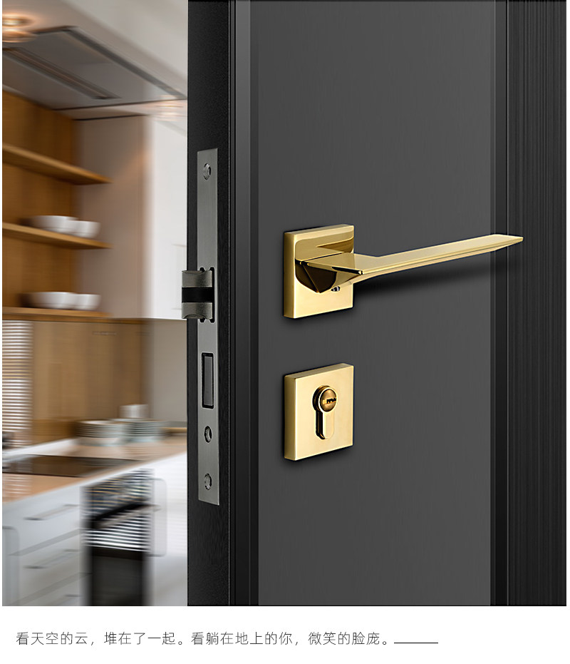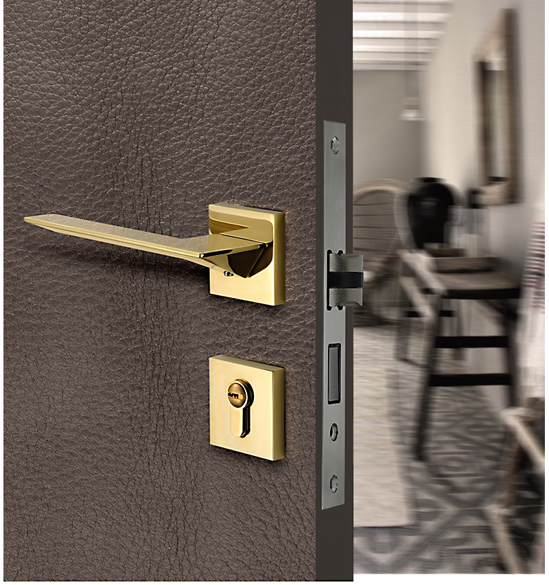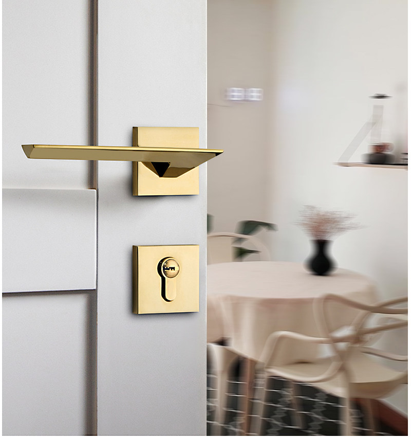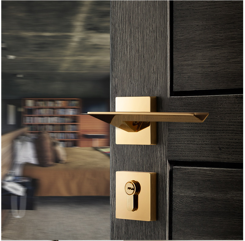 Golden bedroom door lock Indoor Nordic quiet light luxury modern simple magnetic door lock Solid wood door handle door lock