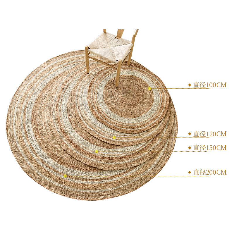 Hand-woven jute living room carpet round Japanese-style tea room B&B Nordic pastoral tea room bedroom bedside mat