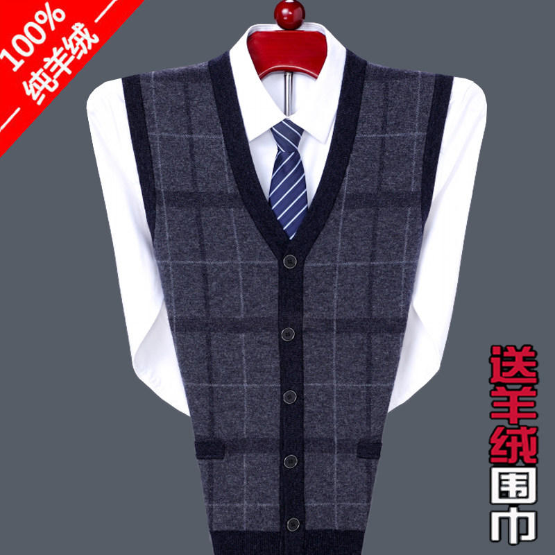 Ordos city cashmere sweater men 100% pure cashmere vest for the elderly sweater vest knitted sleeveless sweater