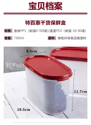 Tupperware storage preservation box Refrigerator refrigerated freezer box 1100ml snack box Food dry goods storage storage box