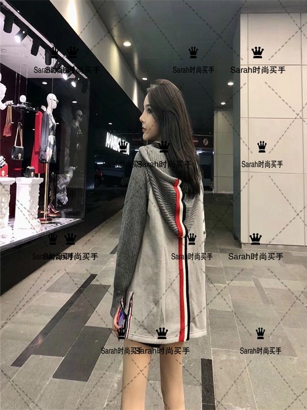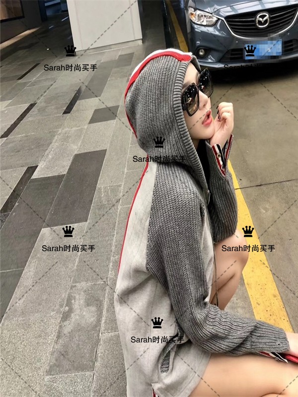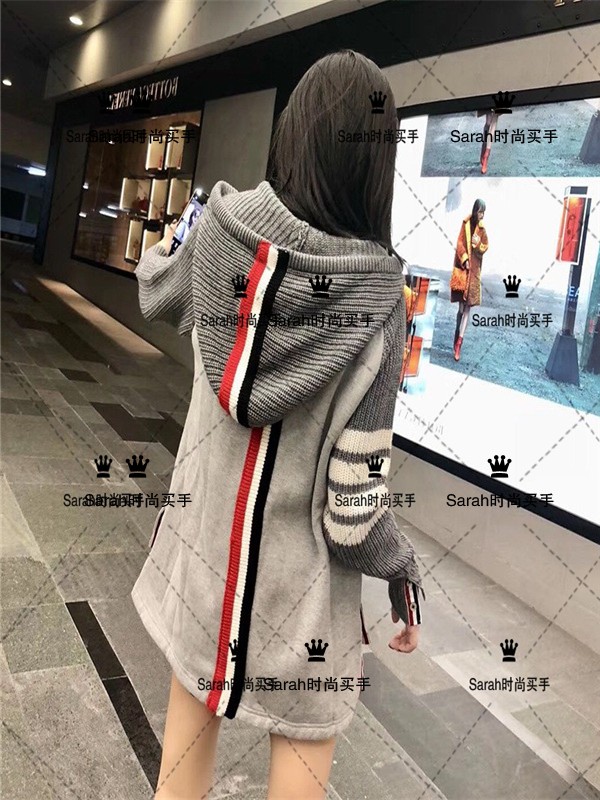 Thom Browne jacket TB back tricolour wool splicing thickened Rnecklace with cap knit cardiovert