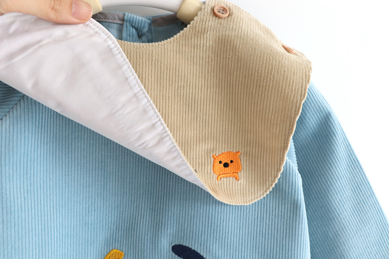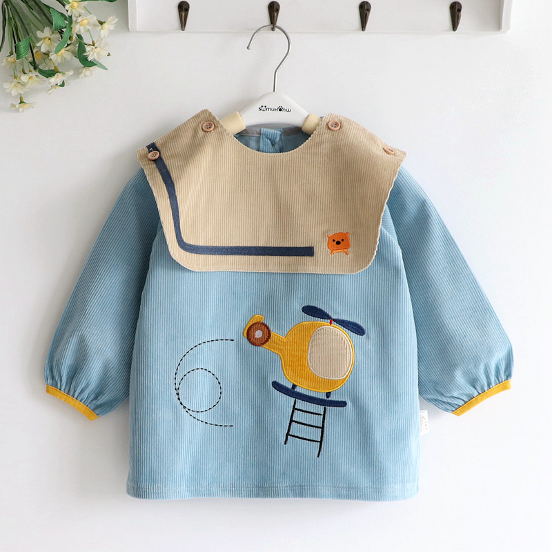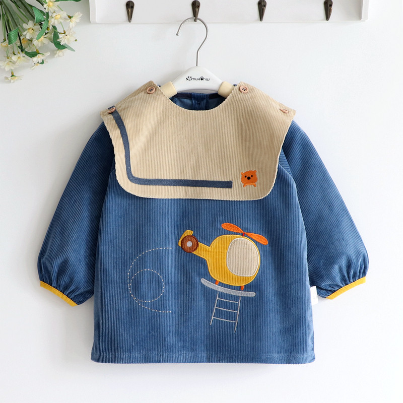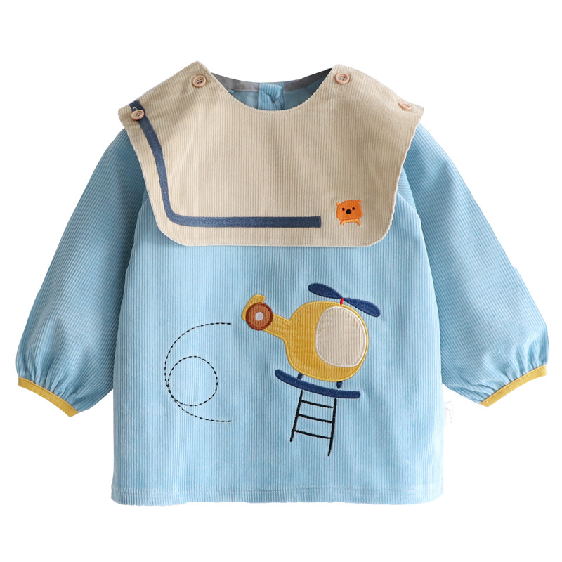 Small Bear Aircraft Light Core Suede Children Boy Waterproof Hood Clothes Baby Eating Surrounding Pocket Anti-Wear bib detachable