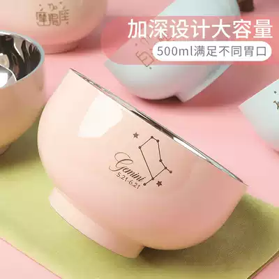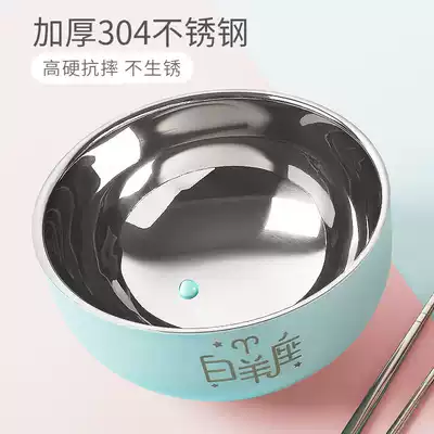 Stainless Steel Bowl Creative Personality Home ins Cartoon Bowl 304 Cute Rice Bowl Children Anti-drop Student Bowl