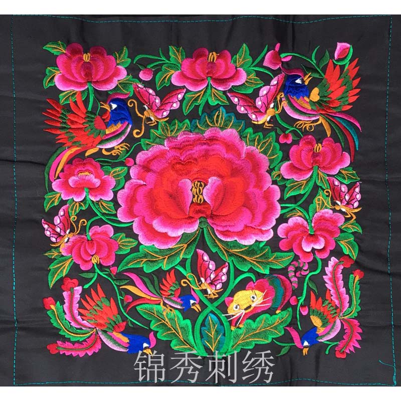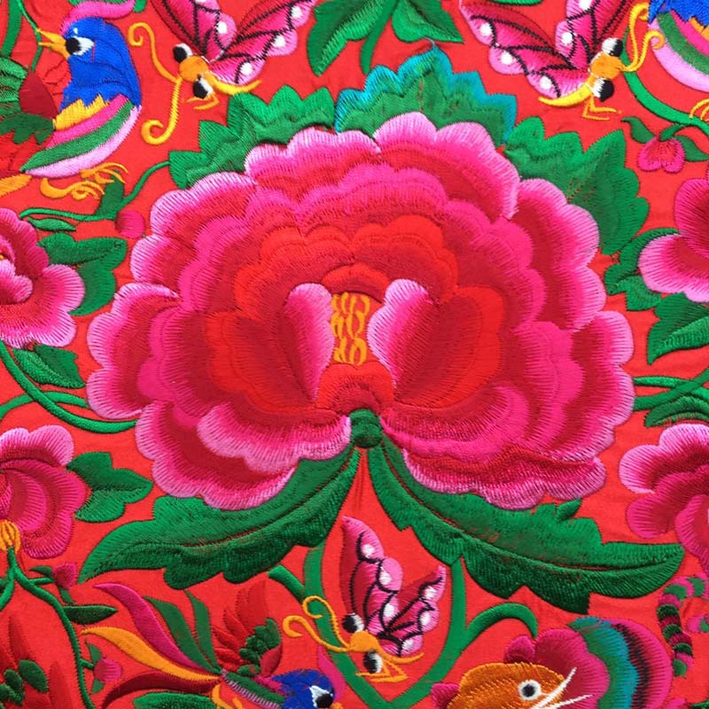 Peony flower machine embroidery ethnic wind big red cloth embroidery Chinese style imitation hand embroidery pieces