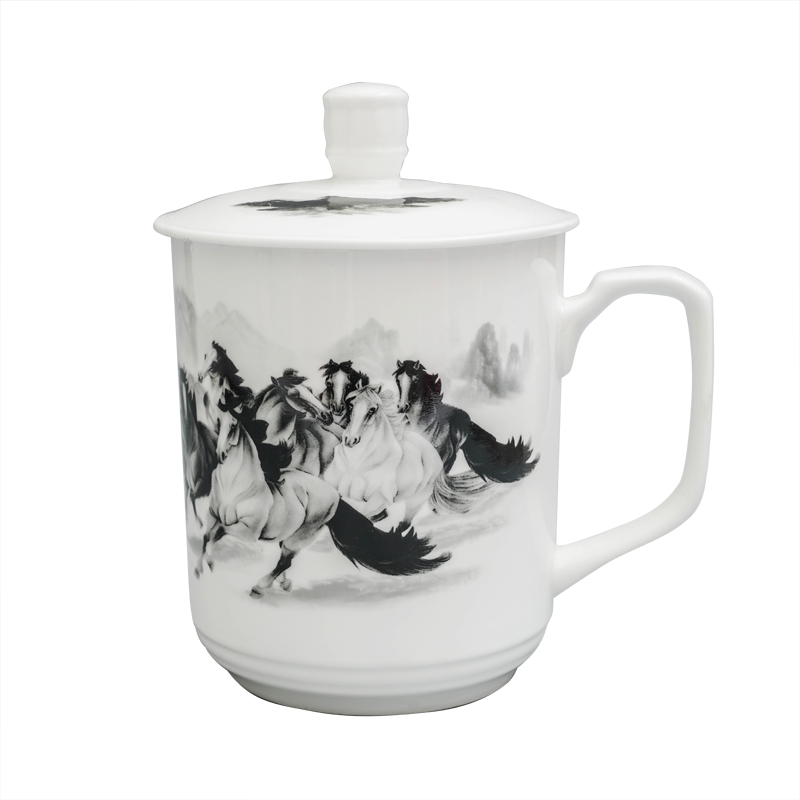 Jingdezhen ceramics large capacity white porcelain with lid Teacup Men's household tea drinking cup Teahouse cup lettering