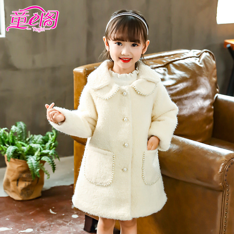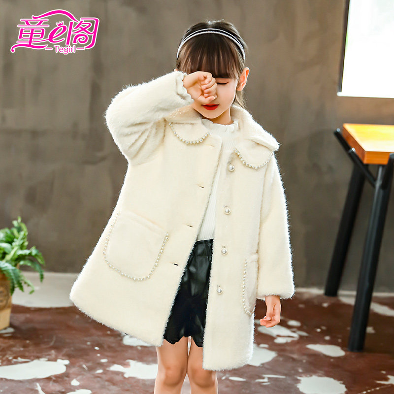 Girls ladylike coat 2021 winter double lapel Western pie top Children's medium and long version of solid color wool coat